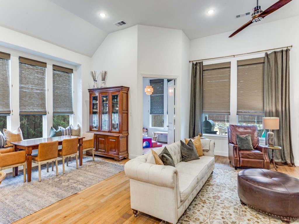 This stunning Highland Home, plan 553, is beautifully designed and boasts a dramatic entry with a soaring ceiling, a hallmark feature of this sought-after layout. The home offers three spacious bedrooms plus a private study conveniently located at the rear of the house, adjacent to the expansive open-concept family, kitchen, and dining area. The kitchen is truly a masterpiece, featuring a large curved island, a charming window seat, and a tall arched niche, all complemented by ample storage options. The bedrooms are generously sized with oversized closets, providing plenty of space for your needs. Additional highlights of this meticulously maintained home include an entertainment room complete with a convenient powder bath, perfect for hosting and relaxing. Nestled in the highly coveted Walsh community and zoned within the top-rated Aledo ISD, residents enjoy access to exceptional amenities such as pools, parks, trails, a fitness center, marketspace, and co-working spaces. This is an opportunity you won't want to miss--come experience the unparalleled lifestyle this amazing community has to offer!