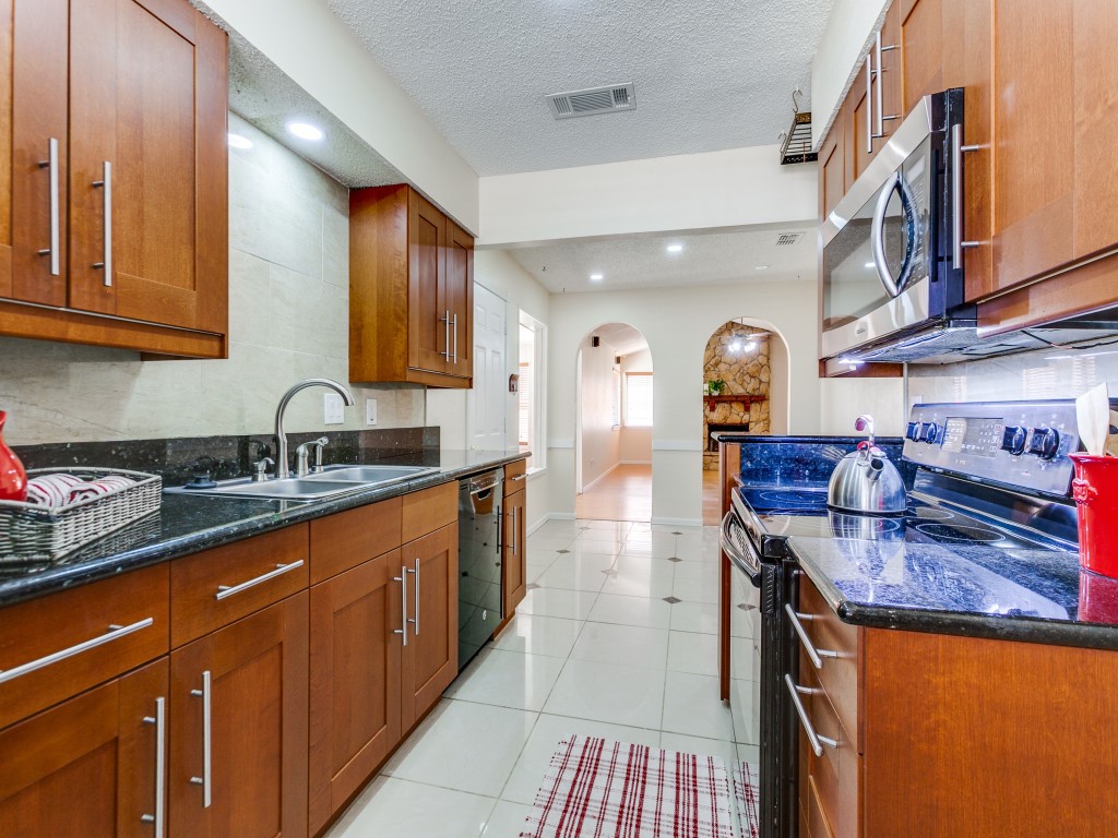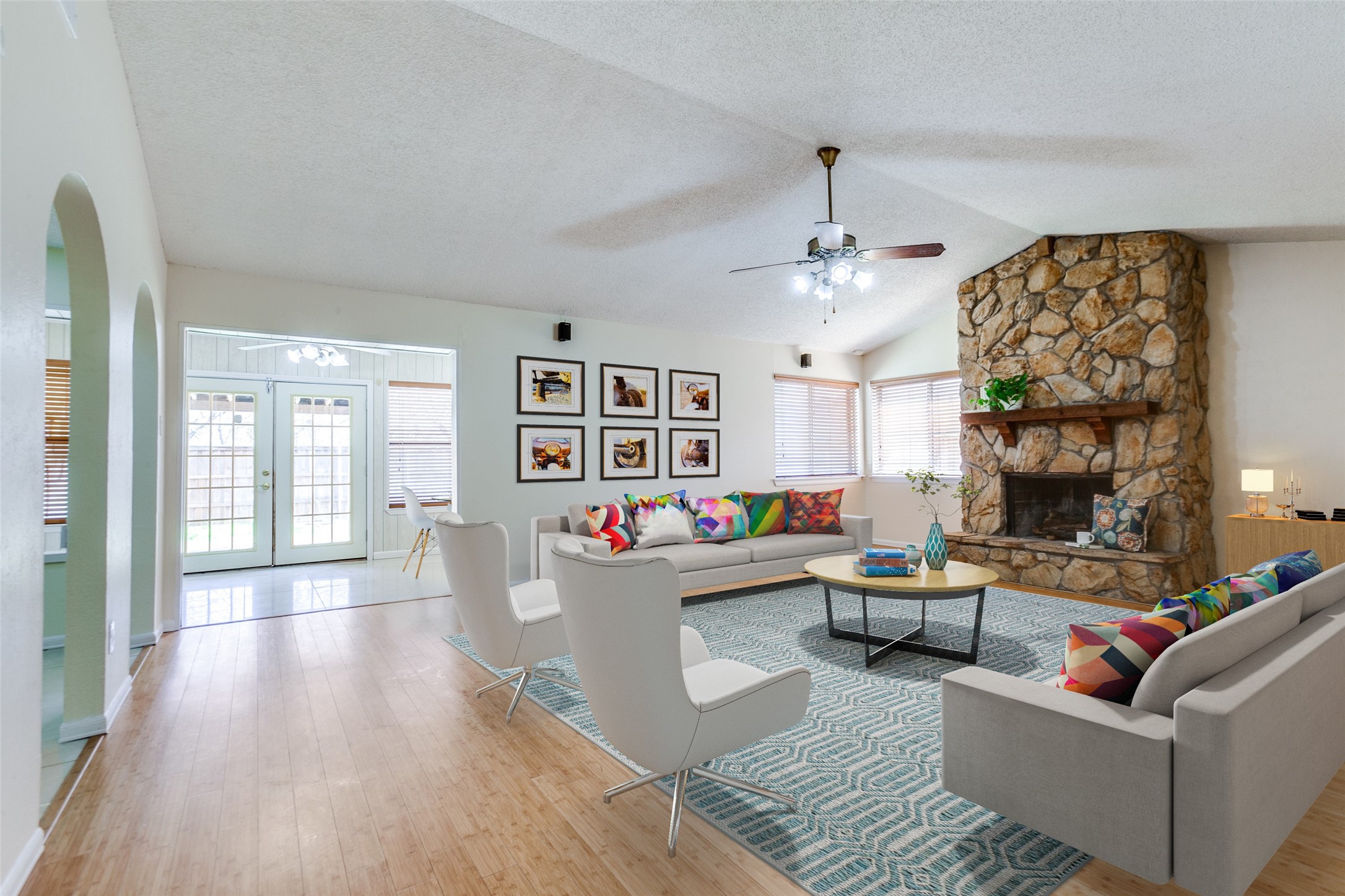 This move-in-ready home comes with a host of upgrades! The sellers had envisioned this as their forever home and invested $70K in solar panels. Their decision to move is your opportunity. Situated in a well-established neighborhood with mature trees, the home is just a short walk from Bob Woodruff Park. Additional improvements include updated flooring throughout, featuring porcelain tile in the entryway and kitchen, refreshed carpet, and bamboo flooring in the living room. Enjoy the covered deck and private backyard. The home also offers updated light fixtures, an expanded kitchen with granite countertops, a tile backsplash, modernized cabinets, and an enlarged second bathroom. Ample storage and much more await! Freshly painted, it's ready for the new owner to make it their own.