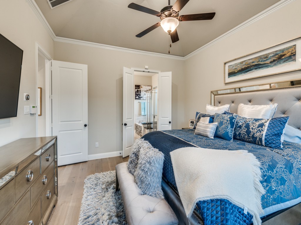 WOW! IF YOU'RE SEARCHING FOR AN INCREDIBLE REAL ESTATE OPPORTUNITY, YOU'VE FOUND IT! This home is truly remarkable, and we invite you to explore the extensive list of upgrades and watch the video. An elegant and luxurious North-facing home with a breathtaking backyard, situated in the prestigious Estancia Addition, just minutes from DFW Airport in the esteemed community of Las Colinas. This magnificent residence features an outstanding floor plan with four bedrooms, four full baths, an office, a game room, and a media room, all meticulously designed. The interior boasts quartz countertops extending to the primary bathroom, complemented by 8-foot solid panel doors, a tankless water heater, and a gas fireplace adorned with floor-to-ceiling stone, all enhanced by state-of-the-art smart home technology. The kitchen, a culinary delight, showcases a large quartz island, upgraded appliances including ovens and gas cooktops, modern lighting, ceiling-height illuminated cabinetry, a farmhouse sink, and a vent hood. The primary bath is a luxurious retreat, featuring a glass shower with tile inlay, dual sinks, and a spacious walk-in closet. On the upper level, you'll find a grand game room with a wet bar, a private media room, and three bedrooms, along with a Jack-and-Jill bath and an additional full bath next to the fourth bedroom. The backyard is a peaceful oasis, featuring a heated and chilled pool and spa on helical piers, complemented by an outdoor fireplace. The beautifully landscaped yard also includes custom lighting, an outdoor kitchen, a pergola, Belgard pavers, a covered patio, Zoysia grass with French drains, and more. Additional features include a Generac whole home generator, custom motorized blinds, bespoke mirror frames, an Ecosystem whole home water softener and filtration system, a wine station, and a custom wet bar with a sink.? This home is situated on an oversized premium PRIVATE corner lot. Walking distance to the NEW Great Hearts school, K-5th grade.