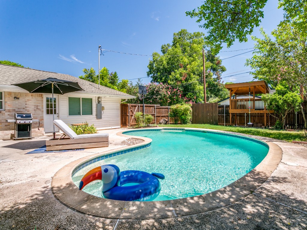 Step into this exceptional Richardson home, nestled in the highly sought-after Canyon Creek neighborhood. The property has been meticulously maintained, boasting elegant wood floors, modern Pella windows that provide both style and energy efficiency, beautiful countertops, newer carpeting, a recently updated pool pump, an HVAC system installed in 2018, a durable roof replaced in 2016, and so much more. Every element has been thoughtfully updated to enhance both form and function. This home offers remarkable flexibility with three distinct living areas, one of which can easily be transformed into an additional bedroom to accommodate your needs. A dedicated office space provides a quiet retreat for remote work or creative projects and can also serve as a guest room, craft space, or multi-purpose room. Step outside to find a backyard oasis designed for entertaining and relaxation. The centerpiece is a sparkling pool, complete with an optional safety fence for peace of mind, surrounded by an expansive grassy area that's ideal for hosting family gatherings, outdoor activities, or simply unwinding in the fresh air. This home truly combines comfort, style, and adaptability in one incredible package.